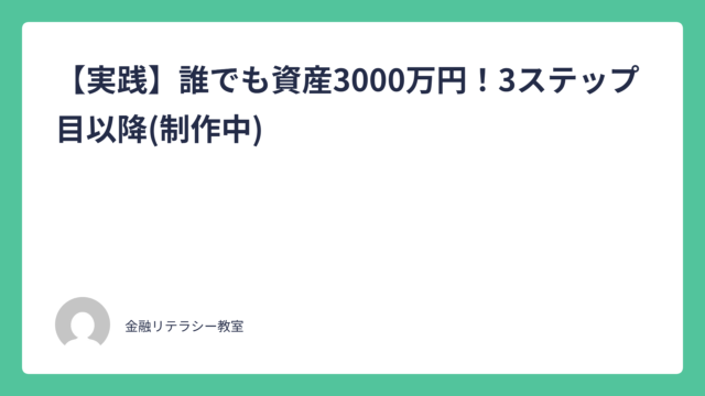 マネーリテラシー 【実践編】資産3000万円への道!1ステップ目 2025年7月24日 金融リテラシー教室 http://money-literacy.online/wp-content/uploads/2025/04/c4de46bfa05710ce47866703ce95a312-1.png 金融リテラシー教室